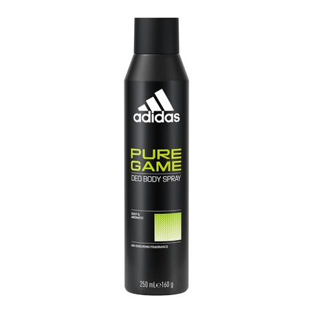 Dezodorant w sprayu adidas Pure Game to idealny wybór dla mężczyzn, którzy żyją pełnią życia. Jego drzewno-aromatyczny zapach utrzymuje się do 48 godzin. Wegańska formuła nie pozostawia śladów na ubraniach.