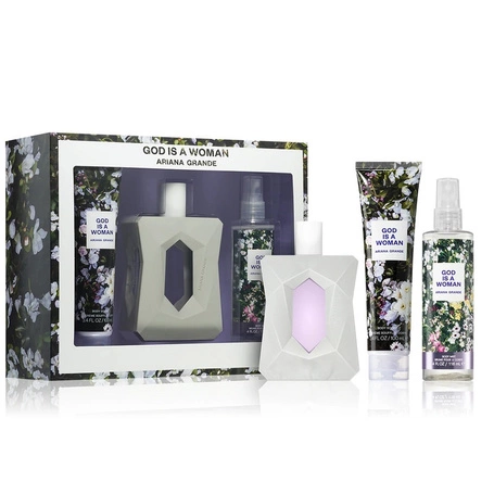 Zestaw God Is A Woman woda perfumowana spray 100ml + mgiełka do ciała 118ml + balsam do ciała 100ml
